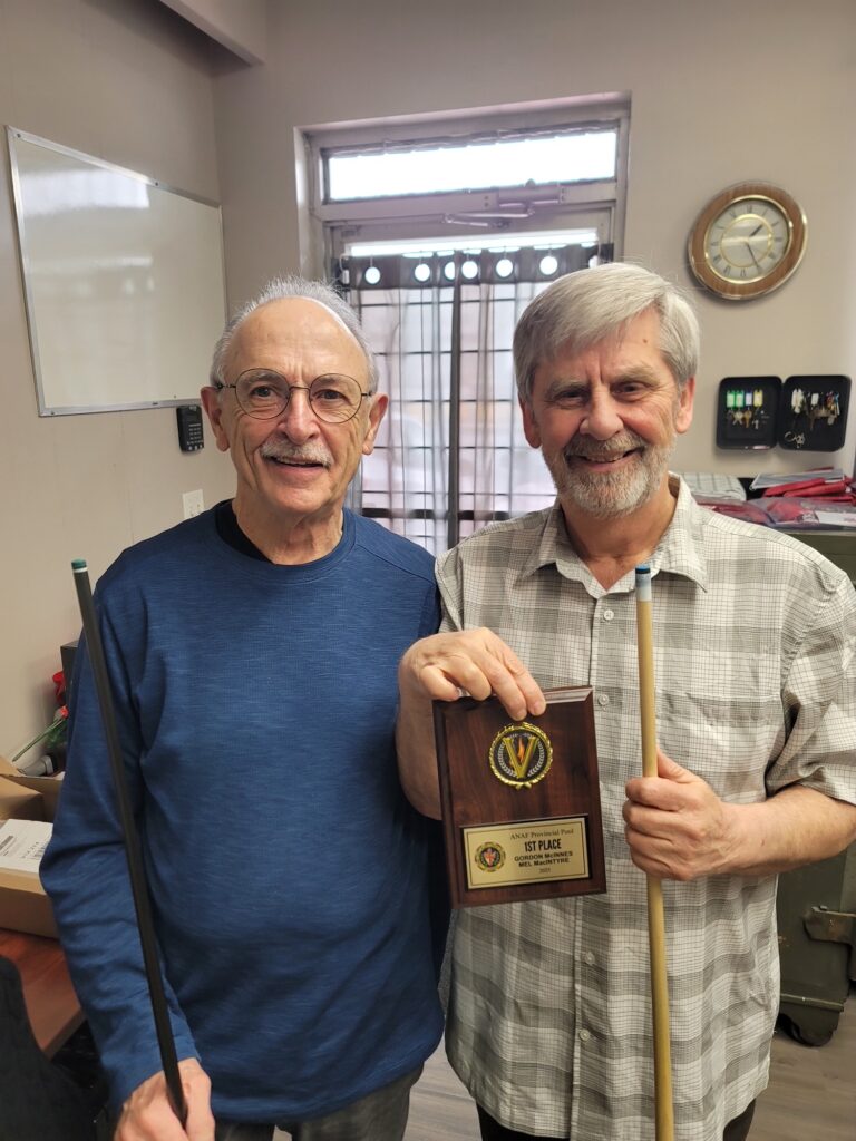 On September 13, 2025 the ANAF Provincial Pool Tournament was held in Vernon. Gord McInnes and Mel MacIntyre represented ANAF Unit #376 and placed 1st in the tournament.